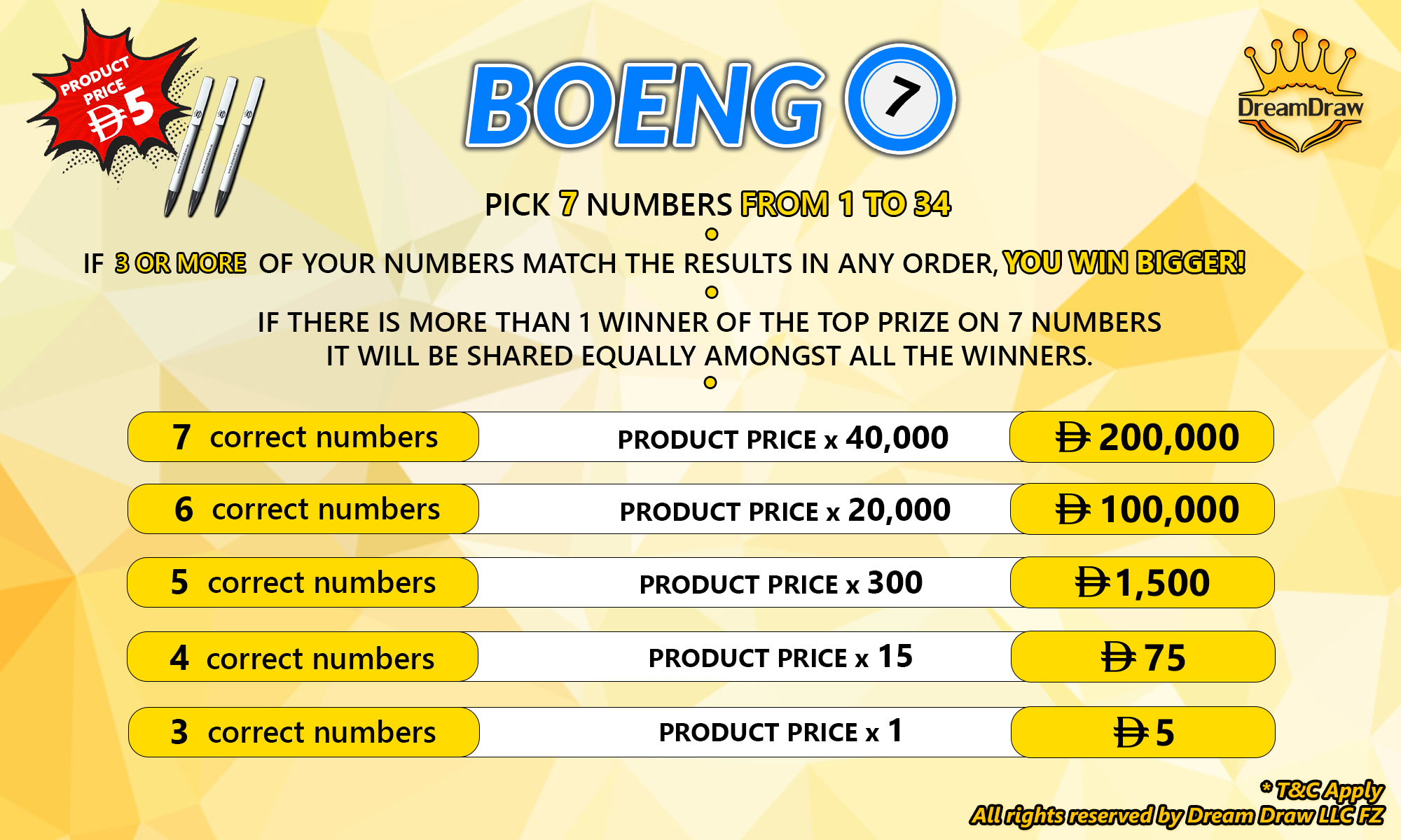 • Product Prize: The cost of participating in BOENG 7 is AED 5.