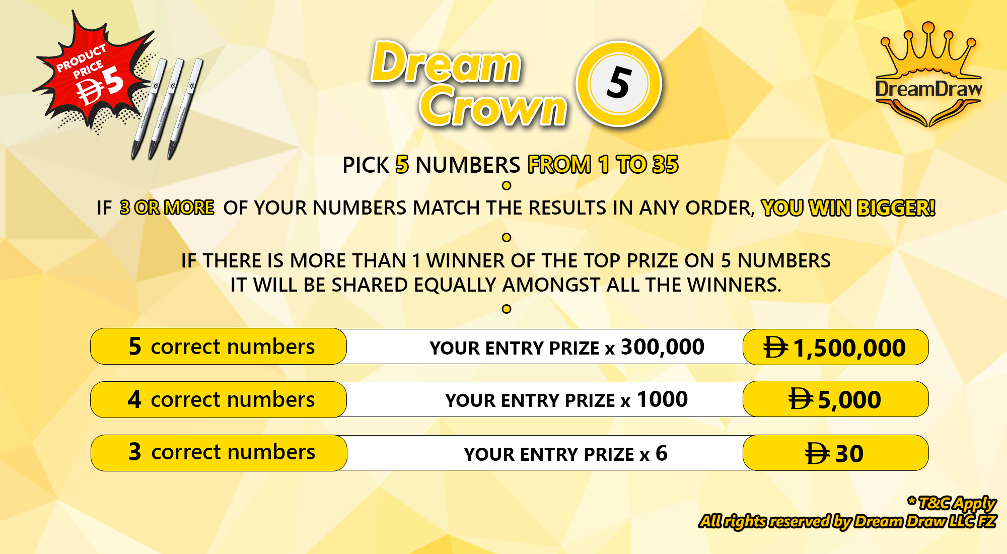 • Product Prize: The cost of participating in DREAMCROWN 5 is AED 5.