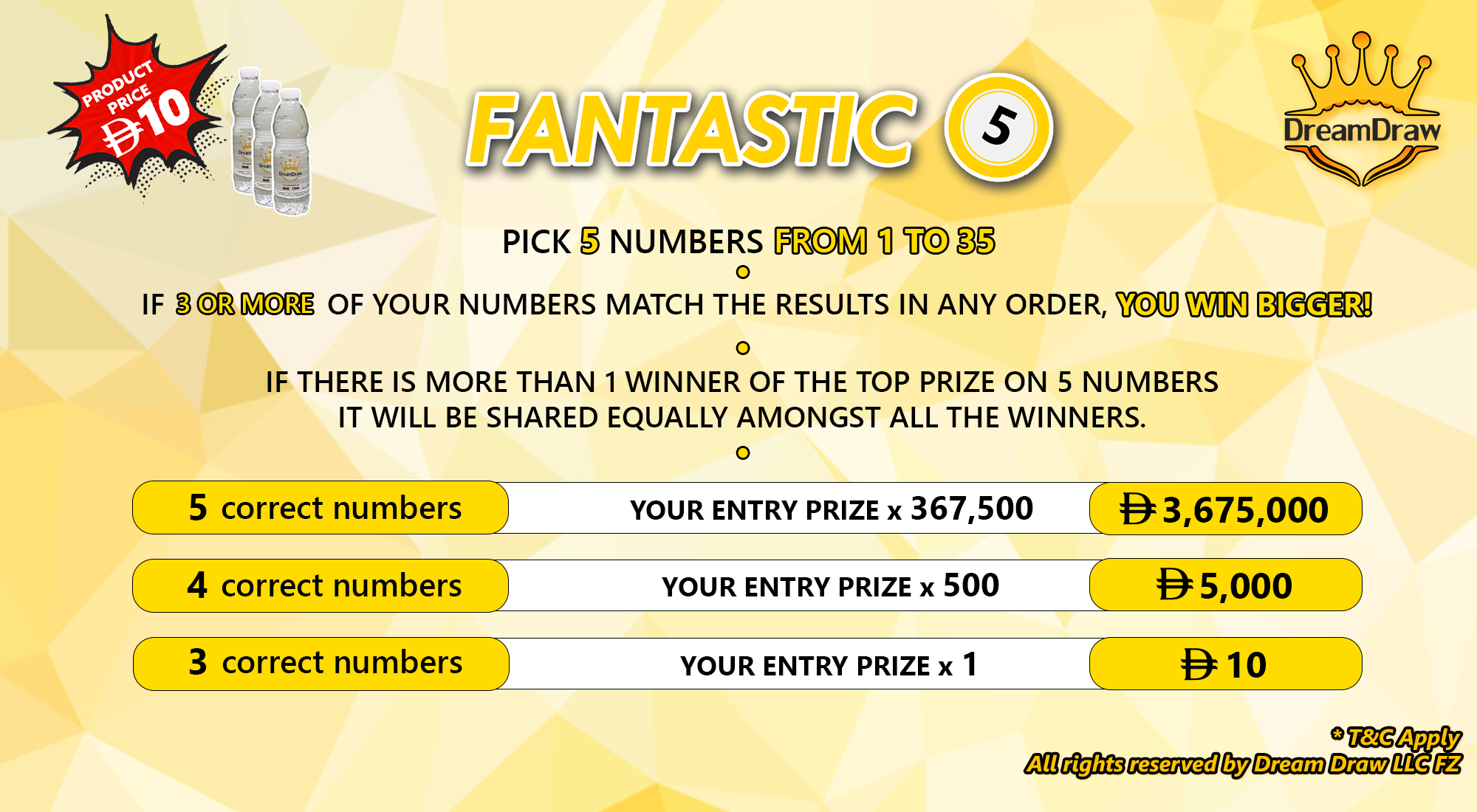 • Product Prize: The cost of participating in FANTASTIC 5 is AED 10.